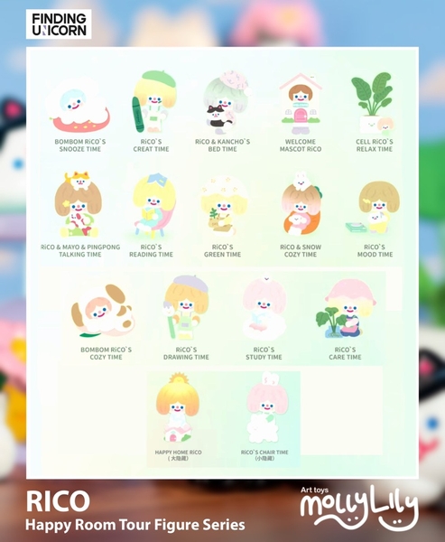 🏡 RiCO Happy Room Tour Figure Series by FINDING UNICORN invites you to explore RiCO’s cozy little home, where everyday moments turn into gentle joys. Designed in soft pastel tones with charming details. It’s a collection that brings comfort, calm, and a sense of healing to your space.